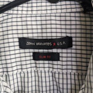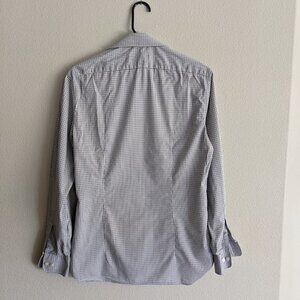 John Varvatos Shirt Slim Fit White/Gray Gingham Button Up Long Sleeve 32/33