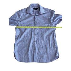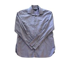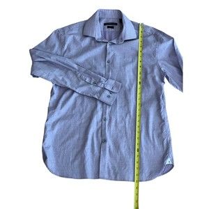 It is a pre-owned item, but still in great condition. The shirt is made of high-quality material and has been well-maintained. You'll love how the shirt fits and feels, with a slimming effect to accentuate your figure. Get ready to impress in this elegant and sophisticated John Varvatos dress shirt.