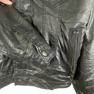 In good preowned condition. Minimal wear. Sherpa has some wear and color transfer to lower part as seen in picture. Multiple pictures. See measurements in pictures. Fabric appears to be a waxed denim type of fabric. Moto, Biker, Streetwear, Rock, winter.