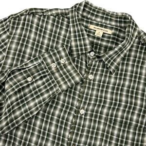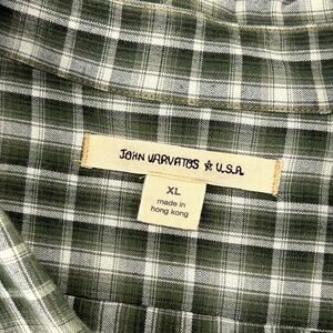 John Varvatos Star USA Raw Edge / Frayed Edges Button Up Shirt Mens XL Slim Fit Green Plaid Long Sleeve Hong Kong Made
