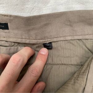 John Varvatos Star USA Tan Linen Cargo Trousers size 32. Super cool lightweight linen trousers in a straight fit with large cargo pockets. I loved these trousers for a while but they sadly don’t fit anymore. Good preowned condition, no rips or major wear.