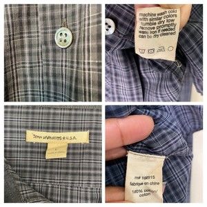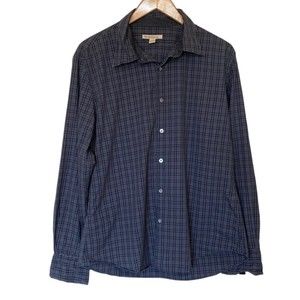 John Varvatos Stripped Checkered Black Gray Long Sleeve Button Down Men's L