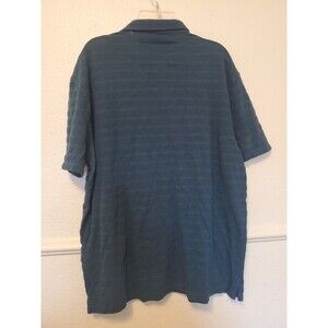 John Varvatos USA Mens Large Green Cotton Polo Shirt Stripes Made in Peru Flawed