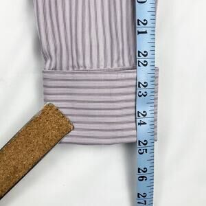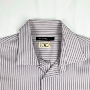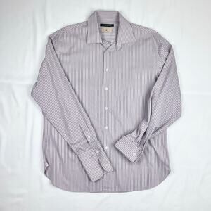 John Varvatos U.S.A. Purple White Stripe Cotton Button Shirt 16 1/2 LONG