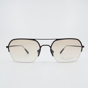 John Varvatos V173 53mm Black Titanium/Brown Gradient Half Rim, New Sunglasses. 100% Authentic. The frame color is matte black, made of titanium metal, with adjustable matte black nose pads for comfort, double bridge, half rim, lightweight, geometric style. Temple color is also matte black with a pattern design. Lens color is light brown, gradient, made of polycarbonate (plastic). Lens width, Bridge and Temple size is 53mm 18mm 145mm. Frame is shipped with the original John Varvatos case and microfiber cloth. Made in Japan by De Rigo Rem. Box JV#5