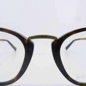 John Varvatos V372 Brown Tortoise/Bronze New Round Eyeglasses with case. 100% Authentic. Frame color is glossy dark brown tortoise shell gloss acetate with matte bronze bridge pattern X design, lightweight, full rim, round style. Temple color is bronze metal with same pattern design at the bridge X, glossy brown tortoise acetate tips with s JV logo on end tips . Lens width, Bridge and Temple size is 48mm 21mm 145mm. Frame is shipped with the John Varvatos case and microfiber cloth. Case may vary. Made in Japan by De Rigo Rem. Box JV#2
