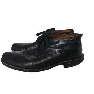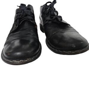 Great pre-loved condition John Varvatos hand made in Italy. Size 11.5 and black color. Biggest call outs is the small rip in the back pof the shoes the shown in the photos, other than that the shoes still in good quality and have more life left. Please see all photos.
