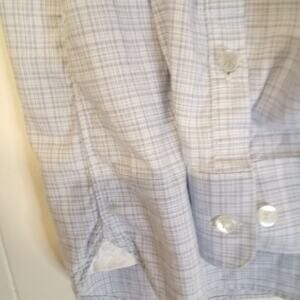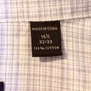 John Varvatos button down. Signature tailored regular fit. Tag says 16 1/2 neck, size 32/33. My roommate tried it on and definitely is a size medium overall. ( see measurements) 100% Cotton.