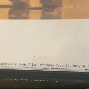 John Vettriano Print Trio 1999 from a Gallery in NYC. Framed in a black frame (needs touch ups). Measures 38” x 14”. ‘The Picnic Party’ ‘The Singing Butler’ ‘Mad Dogs’. Free shipping. Can be purchased without frame, as buyer likes.