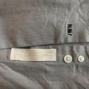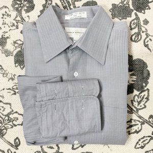 John W. Nordstrom long sleeve button down dress shirt. Gray with subtle herringbone pattern. Left breast pocket. French cuffs. Rear side pleats. 100% long staple cotton twill. In excellent condition.