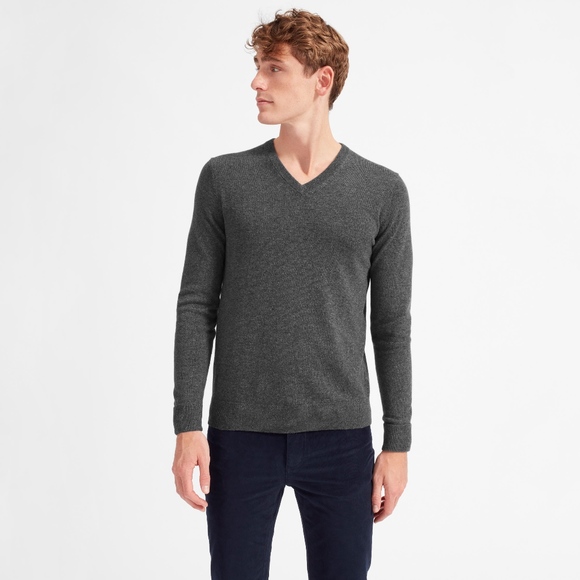 John W. Nordstrom Italian Merino Wool V-Neck Sweater in Charcoal Gray.
