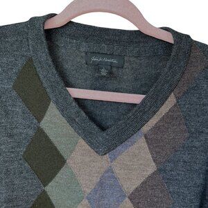 John W Nordstrom Mens Merino Wool Sweater Sz L Gray Argyle Old Money Scholar Dad