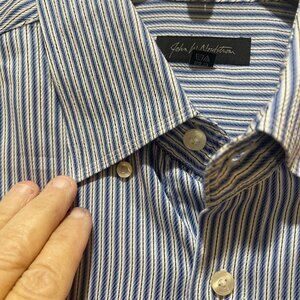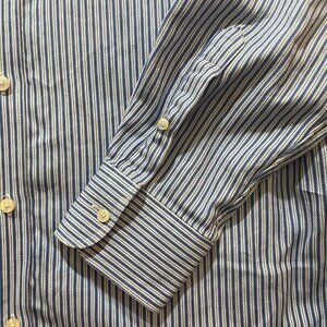 John W. Nordstrom Mens Striped Egyptian Cotton Button-Up Shirt L Blue/White