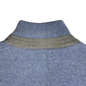 John W. Nordstrom Sweater Men M Blue Italian Merino Wool Waffle Knit 1/4 Zip