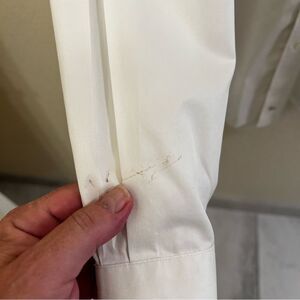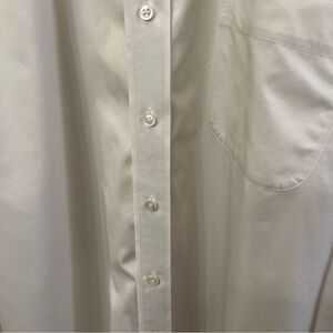 This white long sleeve dress shirt is from John W. Nordstrom. This item is made from 100% cotton. The size is 18.5 - 35. The measurements are 34” L x 30” W (pit to pit) x 25” sleeve (shoulder to cuff). This dress shirt has been preowned but it is in very good condition. There is a small mark on the right sleeve by the cuff. (See photo)