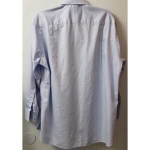 Pre-owned Men's dress shirt in classic light blue, ideal for professional, semi-formal or casual occasions. 63% cotton/37% Polyester. Made in Malaysia. Embroidered JWN (John W. Nordstrom) logo on bottom. 3 spare buttons included.