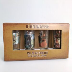 John Wayne 4 Piece Laser Decal Tall Glass Shooter Set NEW in Box Barware Shot