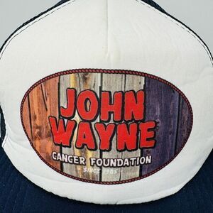 This cap features a John Wayne Cancer Foundation logo in black and white, making it a perfect accessory for any vintage hat enthusiast. The cap is suitable for both men and women and is one size fits all due to the adjustable strapback. The sleek design of this cap is ideal for any casual or semi-formal outfit, making it a versatile addition to your collection.