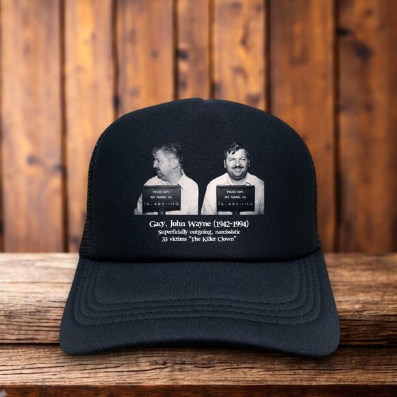 John Wayne Gacy Mens Trucker Hat Black 70s Killer Clown True Crime FBI Cap