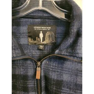 John Wayne Stock & Supply Men's Large Blue and Black Plaid Long Sleeve Collared