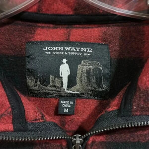 John Wayne Stock & Supply Red Black Buffalo Check 1/4 Zip. Fleece Henley Medium