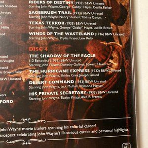 Disc 2: Hell Town, Neath The Arizona Skies, Paradise Canyon, Rainbow Valley, Riders of Destiny, Sagebrush Trail, Texas Terror, Winds of the Wasteland