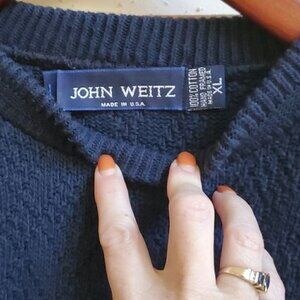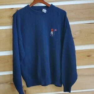 John Weitz Hand Framed Knitted Embroidered Vintage Golfer LS Sz XL Sweater