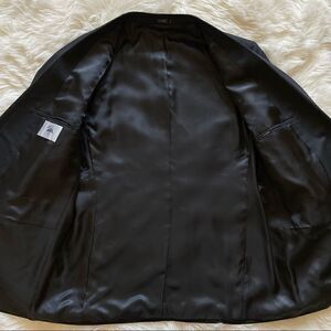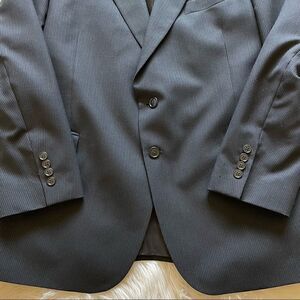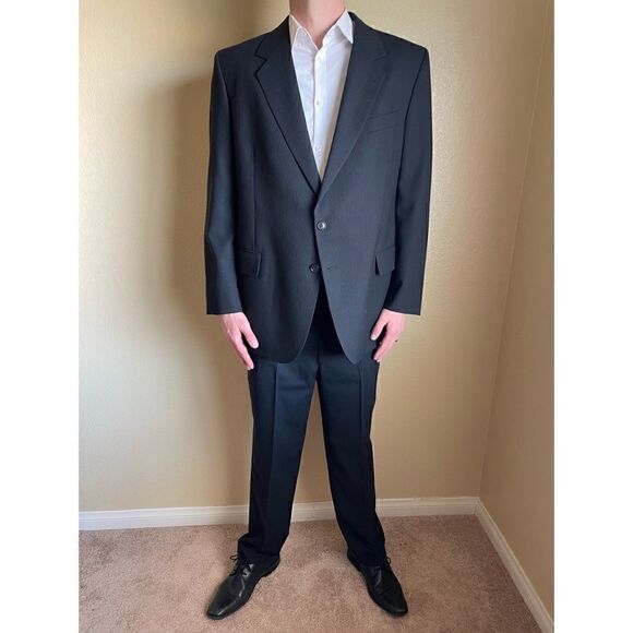 John Weitz Studios Pencil Stripe Wool 2 Piece Suit Black Size 42R Portly