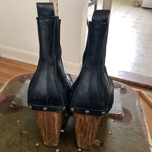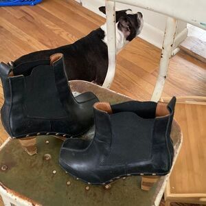 If you know about the John Fluevog brand and story welcome to the club! If u don’t I will urge you to visit the website and get your knowledge ON! I’ve been obsessed with his style and design for a long time. When I came across these gems I KNEW I had to get them! These are previously loved in very good condition! Chunky wooden heels, non slip bottom, leather upper with wide elastic bands on both sides for easy on and off. Square toe and heel give it that JF style. I don’t see the size but I wear an 8 and these seem to be a 6. If u wear heels and can give me some advice on the best way to measure them for accuracy please reach out!