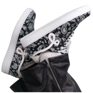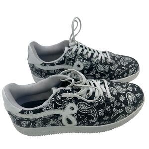 John Geiger GF-01 Lows Black and White Paisley Sneakers Size 13