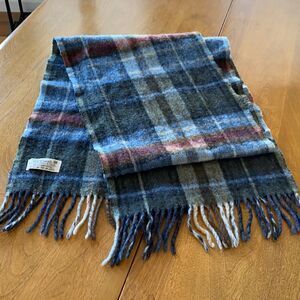 In gently used condition. Made in Ireland of 109% lambs wool. Colors are blues, green and burgundy. Measures 60” x 11”.