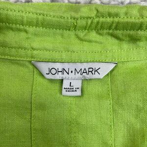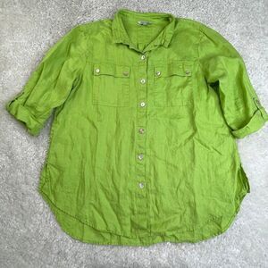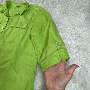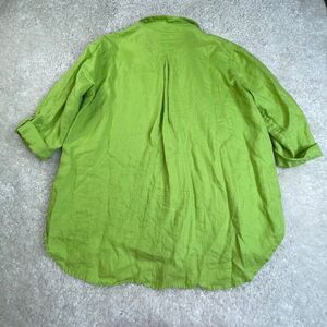 John Mark Linen Button Down 3/4 Sleeve Blouse Lime Green