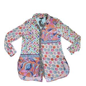 John Mark Tunic Top Womens Medium Button Front Boho Floral Leopard Paisley Anima