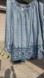 Chic blue blouse with delicate stripes. Features intricate hem design. Perfect for casual outings.
