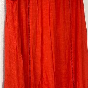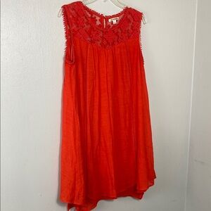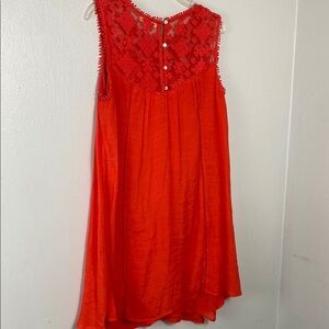Elegant red dress with intricate lace design. Sleeveless and stylish. 36” inches long