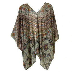JohnPaulRichard Size Medium beautiful poncho features intricate patterns and vibrant colors.