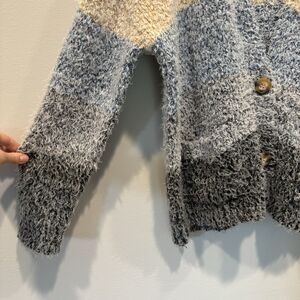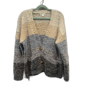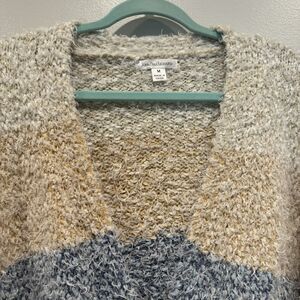 JohnPaulRichard Sweater Cardigan Blue Beige Stripe Eyelash Womens sz Medium