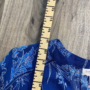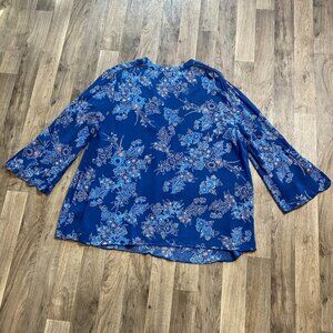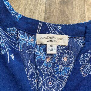 JohnPaulRichard Woman Blue Floral Peasant Blouse Long Sleeve Size 1X