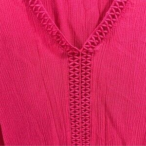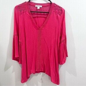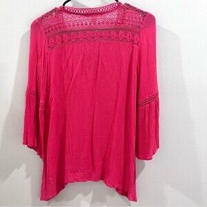 JohnPaulRichard crocheted yoke bright pink vneck top size small