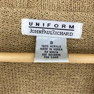 JohnPaulRichard sweater is a tan knee length duster cardigan that ties in front and is in good pre-owned condition. See photos for details and measurements. Women's size small.