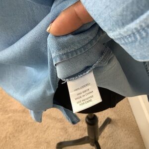 JohnPaulRichard women’s distressed frayed v-neck chambray boho top. Size L