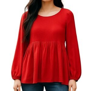 JohnPaulRichard Red Popover Cold Shoulder Blouse