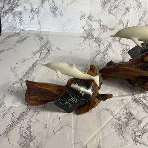 Approximate Measurement 6.25×3× 3.25 Two Dolphin 10x13 Single Dolphin Sculpture Resin Dolphins on Burl Wood Base