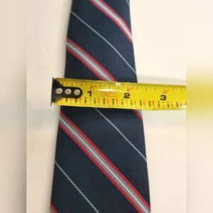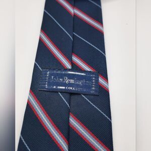 John Remington, navy blue, red and baby blue striped silk tie