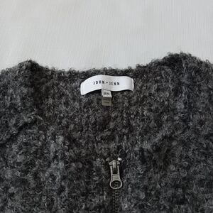 John and Jenn Gray Wool Blend Teddy Sherpa Zip Up Sweater Jacket Women's Medium