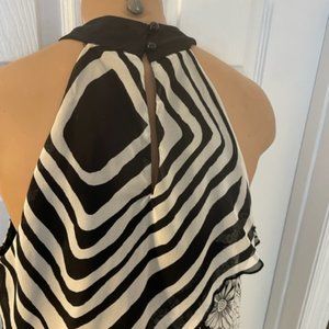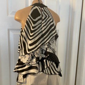 Johnathan Martin Black/White Ruffled Floral & Polka Dot Top Small
