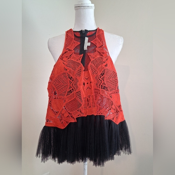 Johnathan Simkhai Giupe Red Lace Tulle Peplum Sleveless Top Sz 0
