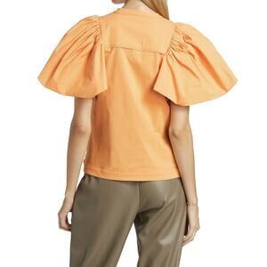 Johnathan Simkhai Hallie Puff Sleeve Top Melon Orange Pastel Poplin SZ S