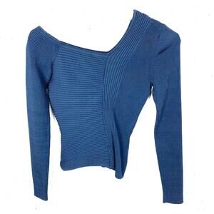 Johnathan Simkhai Womens Charlie Asymmetric Ribbed Sweater Blue Size Small