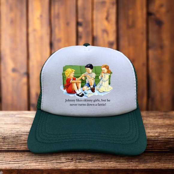 Johnnie Loves Fatties Mens Trucker Hat Green Marijuana Cigarette Parody Funny